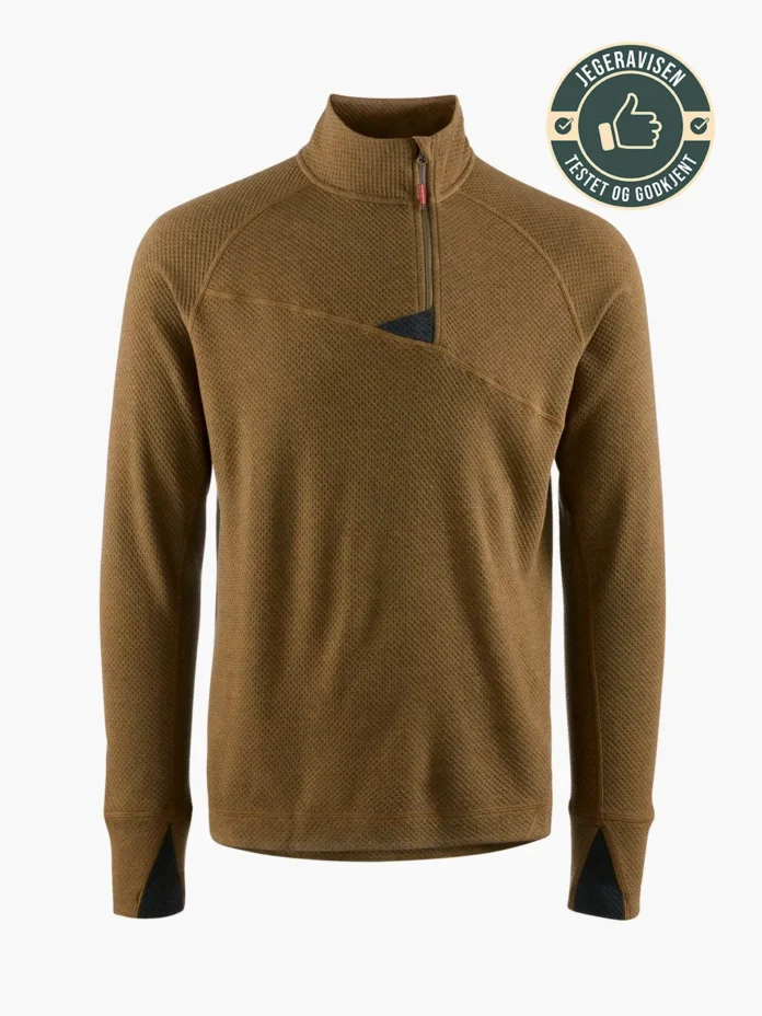 Huge Half Zip genser fra Klättermusen, er utviklet som et lett og teknisk inner- eller mellomlag for turer med høy intensitet.